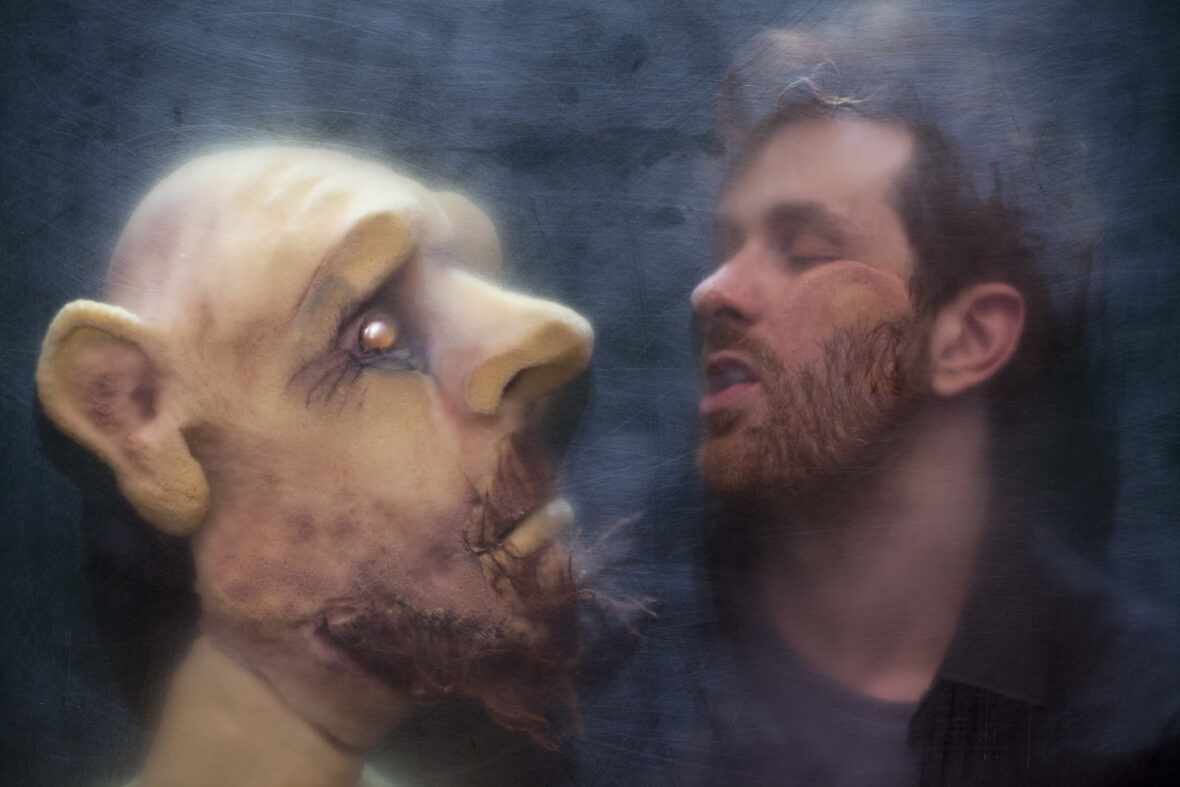 The aforementioned Bastard! (2010) is one of Paiva’s best productions – a successive solo spectacle and a free adaptation of L’Arrache-coeur (Heartsnatcher), the satirical and surrealistic novel by Boris Vian. This is a story about a confused artist attempting to discover a way out of the rubble of existence portrayed as a gigantic refuse dump ruled by a grotesque and legless hag (a puppet) and her heart-breaking emaciated puppet partner clad only in his underpants. The already legendary scene of the dance performed by Paiva and the crone, with whom the actor shares his legs, is equalled by many other episodes, in particular the improbable simultaneous animation of both puppets, which, together with the animator, perform a truly masterly dance on the metal construction of a cuboid, involving the diverse motion of three characters. From the time of Bastard! Paiva’s spectacles feature yet another prominent partner – the playwright. Originally, this function was fulfilled by the Slovenian director Jaka Ivanc in Bestiaires (2011/2012) – a virtuoso show based on motifs from the Greek myths and realised with two casts: Dutch and Norwegian, or in Break a Legend – a spectacle commemorating the tenth anniversary of the Duda Paiva Company and featuring Paiva puppets from different productions. Bestiaires was a consecutive féerie of made-up puppets, including ones impossible to ignore, such as the head of Zeus, the three-headed Cerberus guarding the Underworld, or the stunning Medusa. The playwright of the most recent Paiva productions and projects is Kim Kooijman, author of excellent photographs of the spectacles.