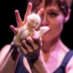 Oczywiście moje oko przyciągają formy lalkowe. Ich twórcami jest Duda Paiva i Cat Smits. Są rozmaite. Obok pełnowymiarowej postaci, o której wspomniałem, w jednej ze scen pojawiają się dwa awatary tancerki, z którymi wykonuje ona efektowne działania. To lalki złożone z korpusów z głowami i rękoma, bez nóg, wymagające innej animacji i specyficznego ruchu, jak w Bękarcie Paivy. Są też same głowy przymocowane do różnych części ciał tancerzy, ich nóg, ramion, barków, kolan czy stóp. Przypominają się sceny z niezbyt dobrze znanego w Europie spektaklu Paivy Scriming Object. Są też maski. Są wreszcie części ludzkiego ciała, np. olbrzymie ramię, powiększone do gigantycznych rozmiarów i zrośnięte z barkiem tancerza. Ta doczepiona ręka staje się samodzielnym istnieniem, jak niegdyś gigantyczna dłoń ludzka w Malediction i jej partnerstwo – zjednoczenie bądź sprzeciw – z aktorem wydaje się sceniczną perełką.