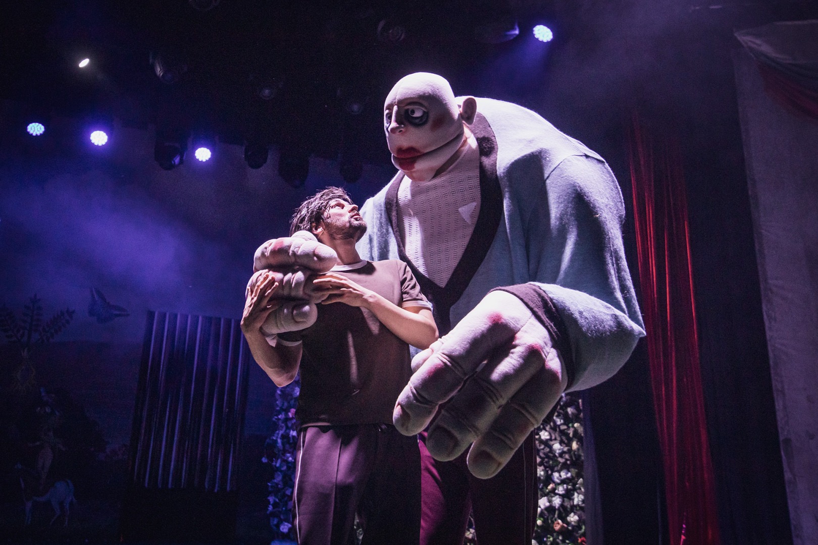 Otwiera je donośny, skrzeczący głos Papugi (Adam Godlewski), słyszalny już w foyer teatru (Papuga jest dodatkiem reżyserki), wykrzykujący co i raz słowo „Jarema”. To piękny ukłon w stronę twórcy Groteski i osiemdziesięciolecia lalkowej sceny. Papuga pojawi się wielokrotnie w spektaklu i wciąż będzie nam przypominać, dlaczego znaleźliśmy się na widowni Groteski.
