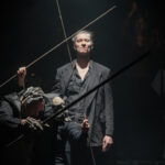 Mogłoby się wydawać, że spektakl Pani Twardowskiej to pełen sukces, bo to z pewnością przedstawienie udane, atrakcyjne i świetnie zrealizowane. Gdzie więc pułapka? Ano… lalki. Jest ich na scenie całkiem sporo. Chyba wszystkie odnoszą się do tytułowej ballady: Pani Twardowska, Mefisto, Twardowski, Żołnierz, choć pojawiać się będę i w kolejnych scenach spektaklu. Wyrzeźbił je w drewnie, według projektów Skuratovej, Rafał Budnik, wybitny polski konstruktor i twórca lalek, który szczęśliwie powrócił do zespołu Lalki. Wszystkie marionetki (bardziej w stylu czeskim niż sycylijki) są same w sobie dziełami sztuki. Zawieszone na krótkim drucie, ze sznurkami do rąk i nóg, mają pewnie ok. 80 centymetrów wysokości. Są dość turpistyczne, z wybałuszonymi oczyma, makabrycznym uzębieniem, z głowami mocno przerysowanymi, bardziej sugerującymi czaszki niż ludzkie wizerunki. Ich charaktery oddane są w precyzyjnej rzeźbiarskiej robocie, którą uzupełniają a to wielkie wąsy, a to zapięty w talii à la słucki pas, a to metalowe naramienniki, skórzane taśmy czy rozmaite konfekcyjne ozdoby.